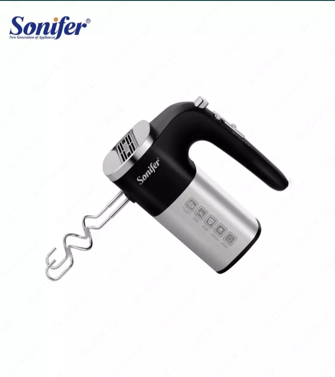 Ручной миксер "Sonifer" SF-7077, 2 насадки, 500W, 5 скоростей+турбо режим (Серебристый/черный)