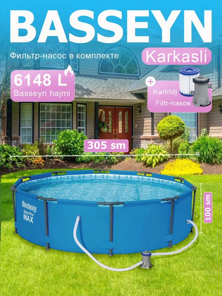 каркасный бассейн с картриджным фильтром-насосом