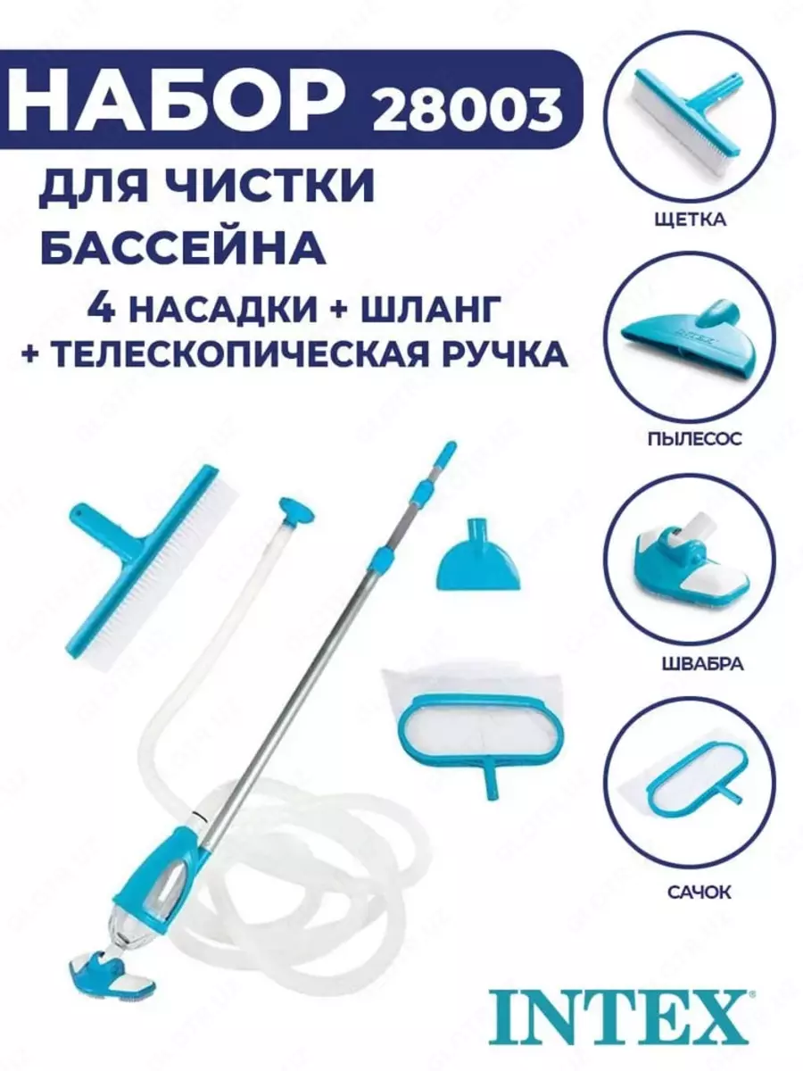 Artikul: P-1098834 Sotuvda mavjudIntex 28003 basseynni tozalash to'plami shamollatiladigan va ramkali hovuzlarda suv va devorlarning tozaligini saqlash uchun universal va qulay echimdir. To'plam sizga kerak bo'lgan hamma narsani o'z ichiga oladi: uzunligi 279 sm gacha bo'lgan teleskopik tortib olinadigan tutqich, sirtdan qoldiqlarni yig'ish uchun to'r, pastki qismi uchun cho'tkasi qirg'ich va filtr-nasos shlangiga ulanadigan changyutgich qo'shimchasi. Chang yutgich suvni tortish printsipi asosida ishlaydi, hovuz tubida qum, barglar va boshqa mayda qoldiqlarni to'playdi. To'r bardoshli neylondan, cho'tkasi esa kimyoviy moddalarga chidamli plastmassadan qilingan. Barcha elementlarni ulash oson va diametri 488 sm gacha bo'lgan hovuzlar uchun javob beradi. Intex 28003 to'plamidan foydalanish filtr tizimining ishlash muddatini sezilarli darajada uzaytirish, keraksiz kimyoviy moddalardan foydalanmasdan suvni toza va toza saqlash imkonini beradi. Foydalanish oson, ixcham va bardoshli bu to‘plam har bir hovuz egasi uchun ajoyib yordamchi bo‘ladi.