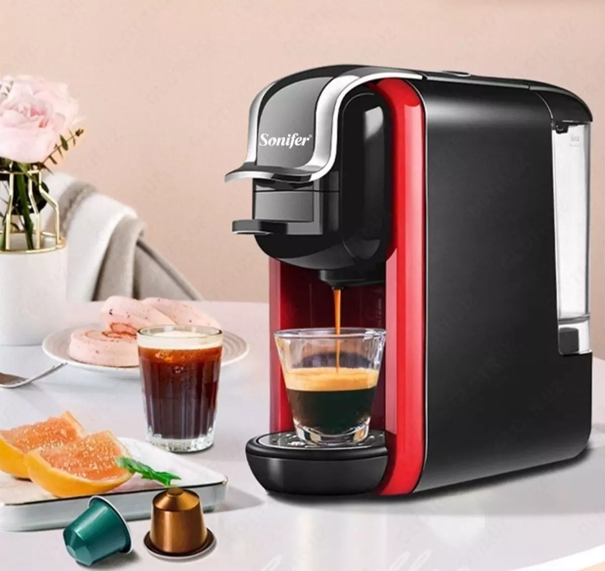 Kofe mashinasi 3-si 1-da (kapsula) "SONIFER" SF-3547, 1450W (Qora/qizil)