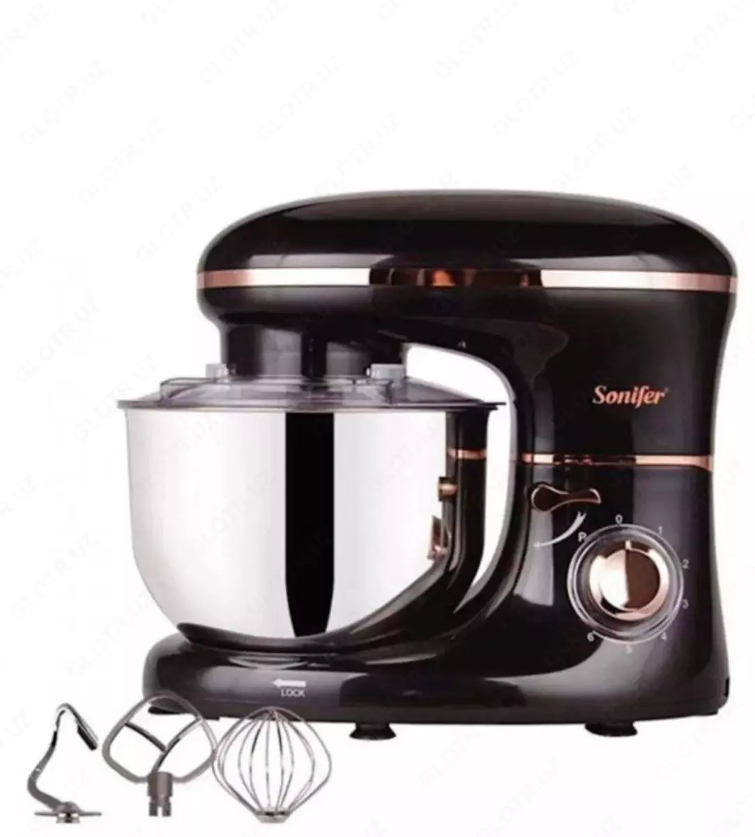 Planetar mikser "Sonifer" SF-8064, 3 ta qo'shimcha, 1400 Vt, 5,5 l (Kumush/qora)